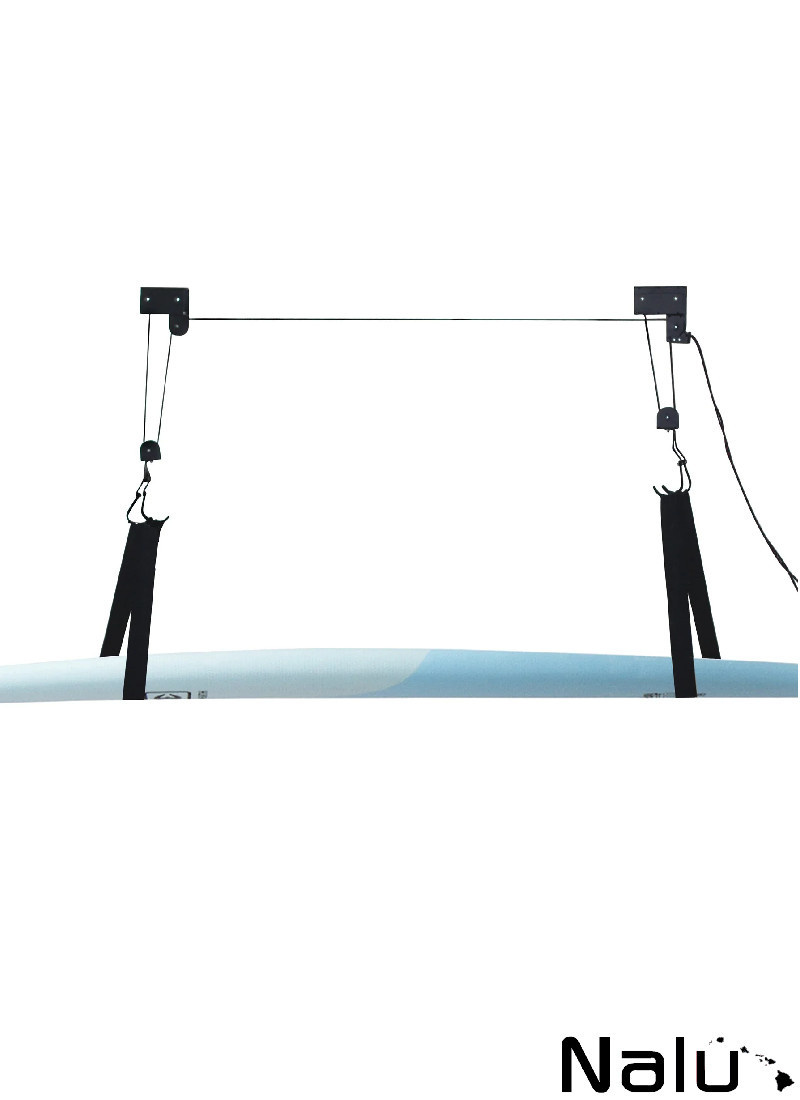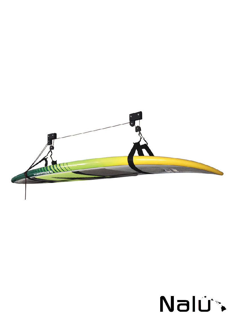 Bescherm en berg je surfplank, SUP of longboard op met het Hoist plafondrek. Dit surfplankrek is voorzien van een robuust katrolsysteem, is eenvoudig te installeren aan het plafond van je garage en biedt plaats aan 4 surfplanken of 1-2 SUP's/longboards. Dankzij de verstelbare hoogte is dit rek ideaal voor kleinere garages waar je extra ruimte nodig hebt. Draagvermogen tot 40 kg.
