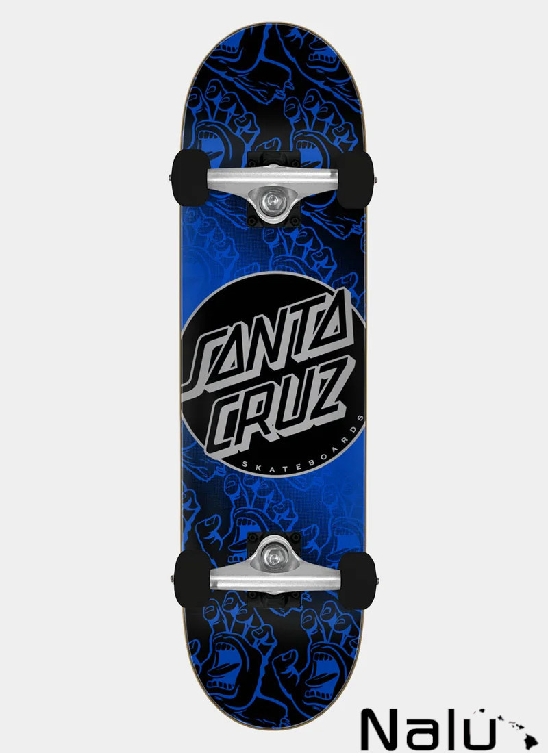 Santa Cruz Other Dot Hands Large Complete is 8.25" wide and 31.5" long with a 14" wheelbase and features Santa Cruz Other Dot Hands artwork, full top grip tape, premium Krux DLK inverted kingpin trucks, OJ 53mm, 95a wheels and Abec 3 bearings.